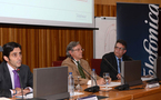 Madrid, 26 de abril de 2012.- El presidente de Telefónica Europa, José Mª Álvarez-Pallete, ha finalizado la primera ronda de presentaciones previstas para dar a conocer el programa Telefónica Talentum, y lo ha hecho en la Universidad Carlos III de Madrid, acompañado de su rector, Daniel Peña y Emilio Olías, director de la Escuela Politécnica Superior de dicha Universidad.