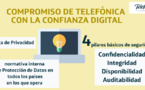 Dentro del terreno laboral, Telefónica muestra su compromiso con la confianza digital con una Política de Privacidad donde describe para qué, cómo, qué tipo y dónde trata la información. En 2015 y bajo la supervisión del Comité Global de Privacidad, Telefónica implantó una normativa interna de Protección de Datos en todos los países en los que opera. Para gestionar correctamente la información que recoge, Telefónica se basa en cuatro pilares básicos de seguridad: la confidencialidad, la integridad, la disponibilidad y la auditabilidad. La telco digital, liderada por José María Álvarez-Pallete, garantiza que a los datos sólo accedan personas debidamente autorizadas y la exactitud de la información y de los sistemas contra alteración, pérdida o destrucción, ya sea de forma accidental o fraudulenta.