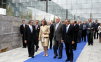 Madrid, 8 de octubre de 2008.- Sus Majestades los Reyes, don Juan Carlos y doña Sofía, han inaugurado hoy la nueva sede de Telefónica en Madrid. El presidente, César Alierta, y el Consejo de Administración les han acompañado en la recepción y han sido testigos de la firma de SSMM en el Libro de Honor de la compañía.