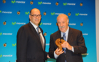 Madrid 05/10/2012. Emilio Gayo, director de Gran Público de Telefónica España ha entregado a Vicente del Bosque el Premio Bravo, distinción creada por la compañía para premiar el compromiso, esfuerzo y buen hacer de los profesionales de Telefónica en todo el mundo, y que por primera vez se entrega a una persona laboralmente no vinculada al Grupo Telefónica.