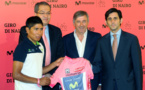 El corredor del Movistar Team Nairo Quintana, reciente vencedor del Giro de Italia 2014, visitó hoy Distrito Telefónica donde fue recibido por el consejero delegado, José María Álvarez-Pallete quien recibió de manos del corredor del “mejor equipo del mundo en 2103” una “maglia rosa” como recuerdo de su gran triunfo en Italia.