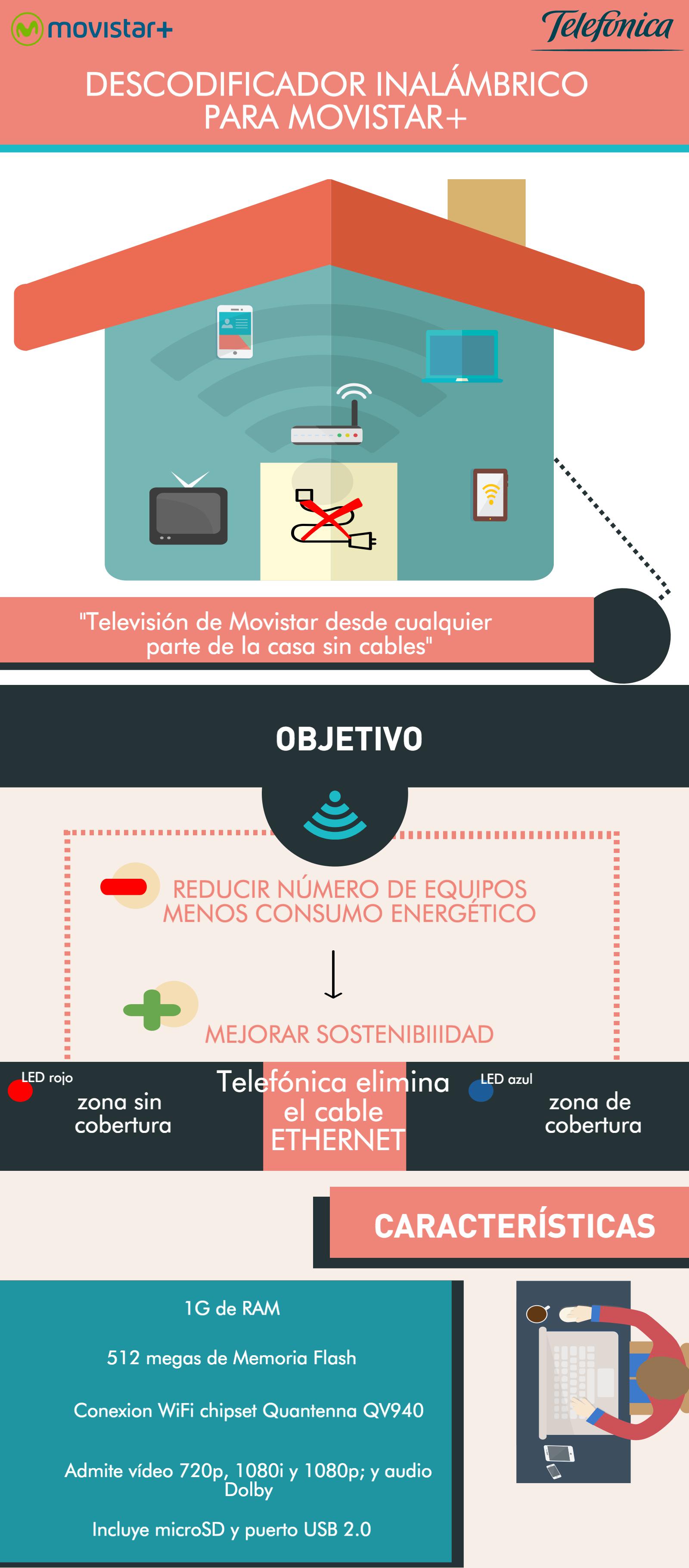 ¿Un sueño?, no una realidad. Por fin podremos ver la televisión en cualquier dispositivo sin necesidad de cables, gracias al descodificador inalámbrico para Movistar+ que ha desarrollado Telefónica, lo que supone una mejora de los equipos domésticos para conectarse. Con este descodificador, que se podrá adquirir a partir de julio, se dará servicio a los distintos aparatos como ordenadores, móviles, tablets o televisores, que permitirán ver la televisión en cualquier parte de la casa y sin necesidad de cables. La operadora sigue trabajando para reducir al máximo el número de equipos en casa del cliente, lo que mejora la estética, la funcionalidad y la sostenibilidad ya que aporta una reducción de consumo energético. Ahora, el equipamiento necesario para tener Fusión se reduce únicamente a dos dispositivos.