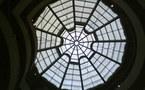 El espacio del Museo se organiza en torno a un gran vestíbulo iluminado por una cúpula cenital. De un punto céntrico nace una rampa con muy poca pendiente que va recorriendo todo el perímetro del hall y dando acceso a las distintas salas de exposiciones que se organizan de espaldas a ese núcleo central. Se puede subir en ascensor e ir bajando, pero también ir ascendiendo poquito a poco pues no es largo ni costoso. Por esta rampa dialogaba Diane Keaton con el amigo Woody en la película “Annie Hall”. El cuerpo rectangular que se aprecia desde el exterior es una de las salas y una cafetería.