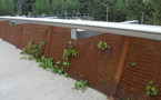 En este detalle se observa como el diseñador-diseñadora (suele ser labor de equipo), ha trascendido hasta el mínimo, hasta la menor escala de lo pequeño. El paramento que forma la barandilla es de "acero corté", un tipo de hierro pre-oxidado que puso de moda el BBV del complejo "Azca" de la Castellana (allá por 1980 -otra vez mi Maestro, Oíza-) y que presenta muy buen comportamiento resistente. La perforación, sutilísima, sin duda se debe a dos factores: